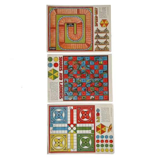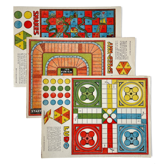 Set of 3 wonderful early 20th century board games, beautifully printed on paper. Fabulous colours and in great unused condition, would look great framed!