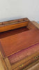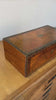 Lovely Victorian walnut writing slope with lots oof fine inlay work. 2 lift-up writing surface lined in velvet, ink well spaces, lidded compartment, see-saw pen rest and secret compartment with 3 mini drawers. The mechanism is spung by lifting one of the ink well partitions. In overall fair condition.