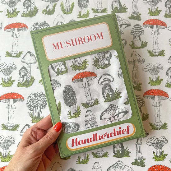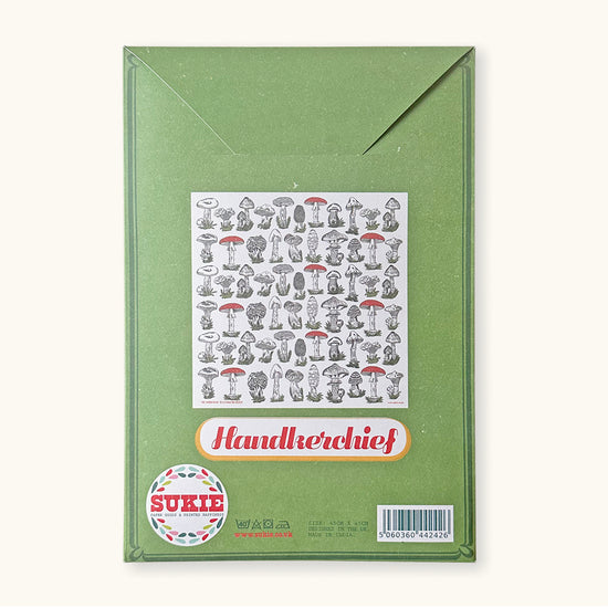 A fun handkerchief design of assorted fungi, illustrated by Darrell & screen printed onto lovely soft 100% cotton. They come packaged in a decorative envelope for the perfect gift!